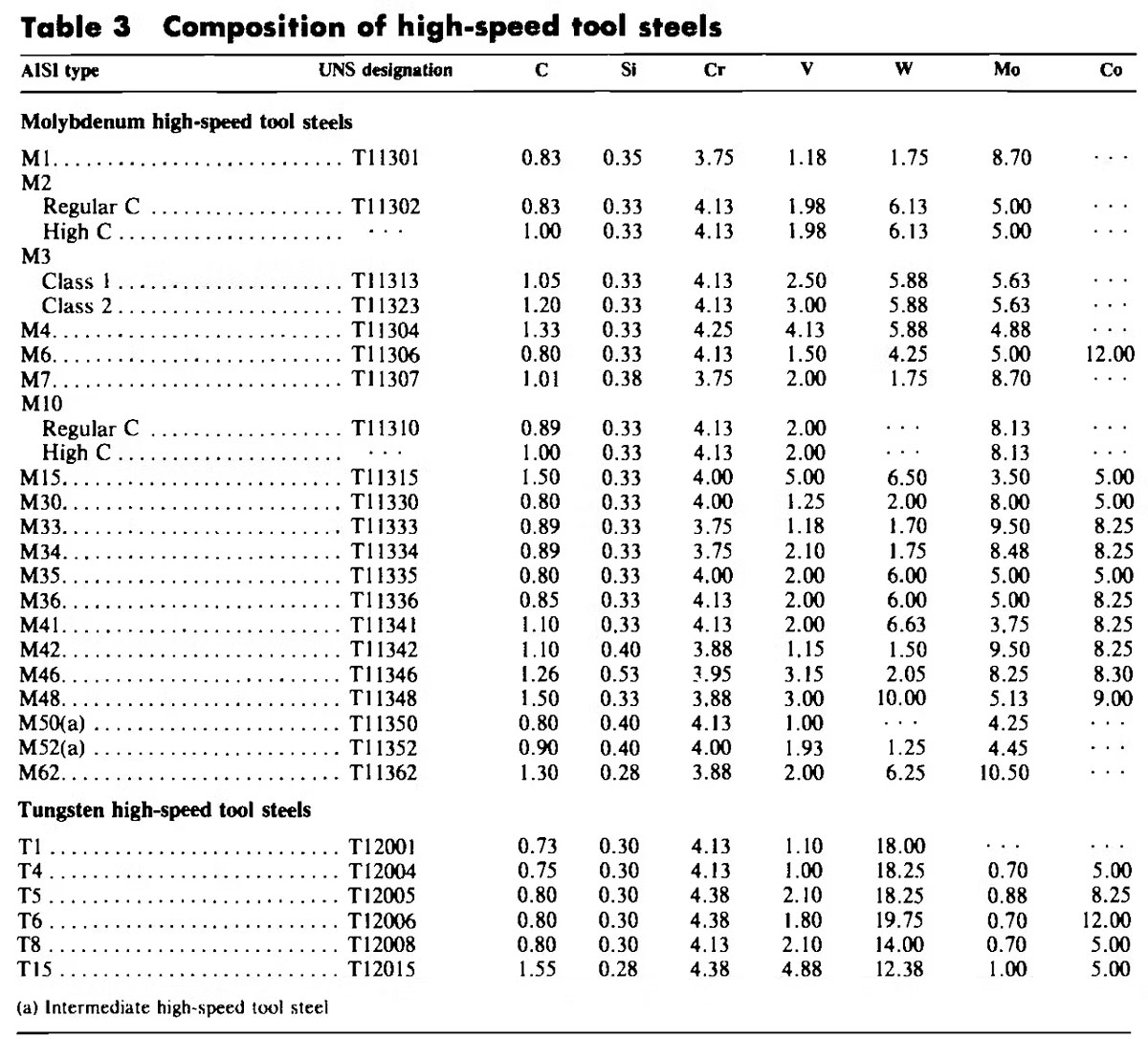 No hay tiempo ni espacio para una lección completa sobre aceros para herramientas. Los interesados pueden leer más al respecto en este ejemplo del Manual de ASM International, Volumen 16: Manual de mecanizado. De lo contrario, sólo hay que saber que el llamado acero Mushet, que la mayoría considera el primer verdadero acero para herramientas, salió del horno hace más de 150 años.
