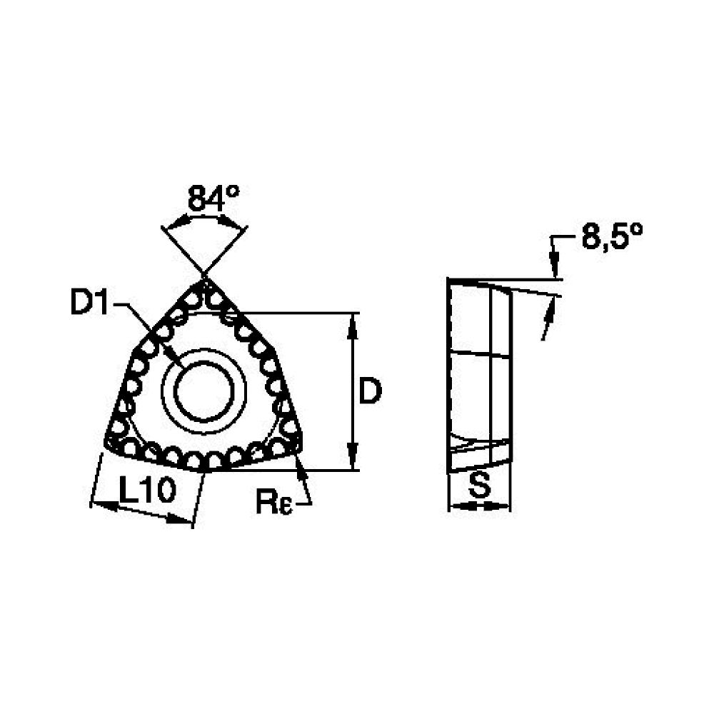 Rε pulg0,031in